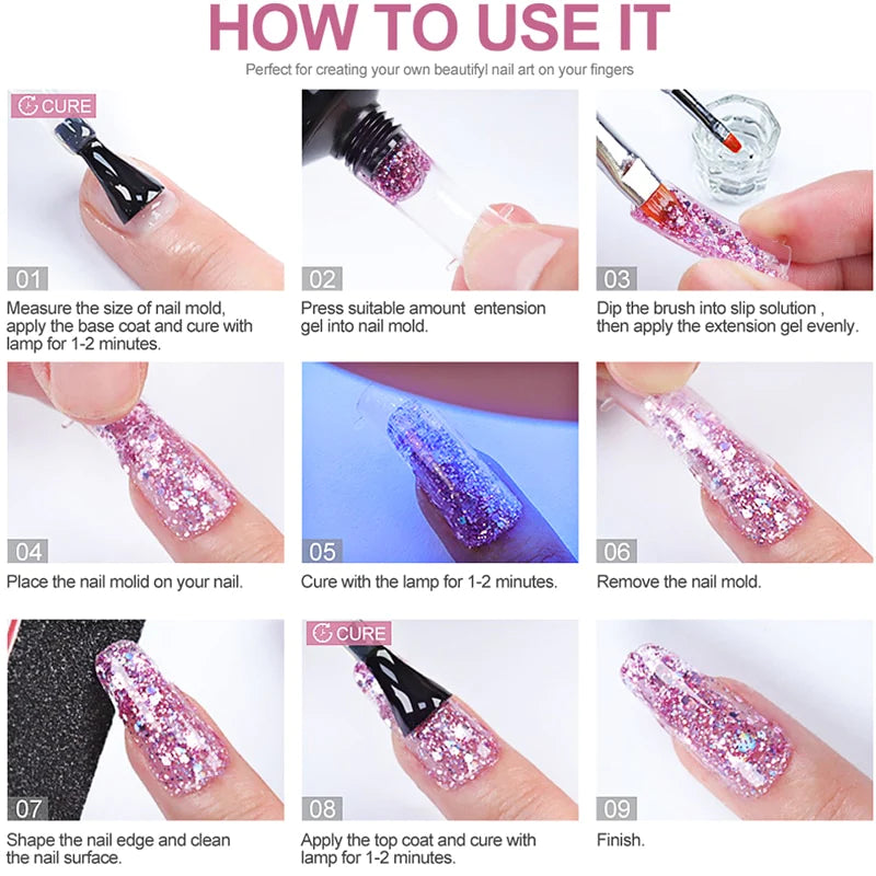 ✔️ Boundless Designing: When you do nails yourself, the possibilities are endless! Try new colors, shapes and effects whenever you want. Thanks to the clear instructions, anyone can use this gel successfully.